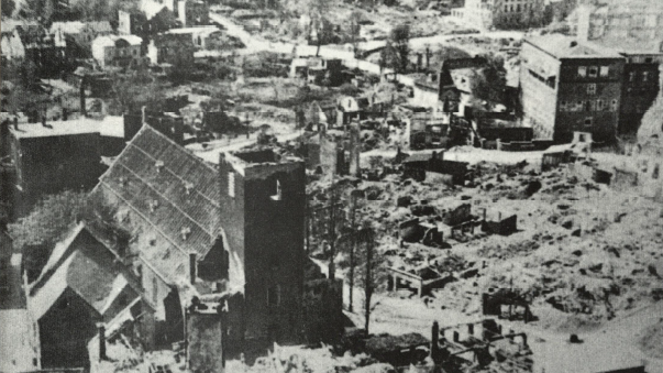 Zerstörung und Wiederaufbau der Nikolaikirche, des Rathauses und der Bebauung am Markt