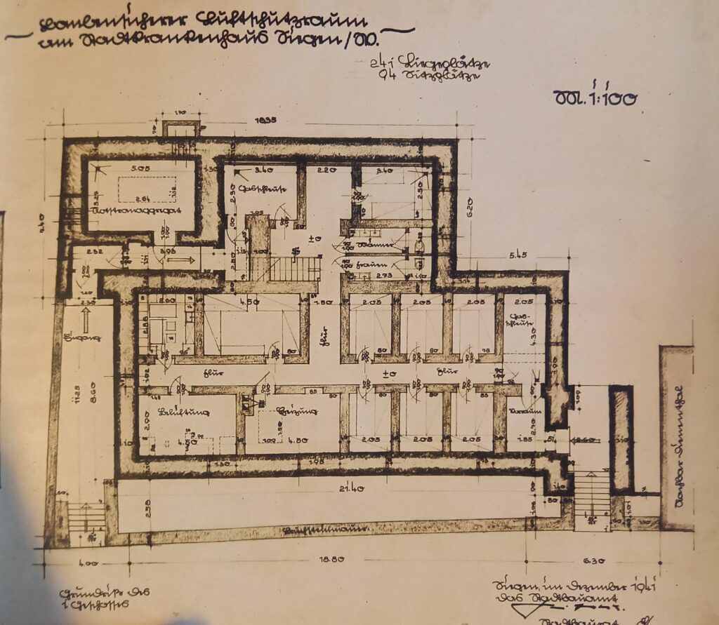 Bauplan des Bunkers am Stadtkrankhaus, Stadtarchiv Siegen, Bestand D Stadtverwaltung, Nr. 1097