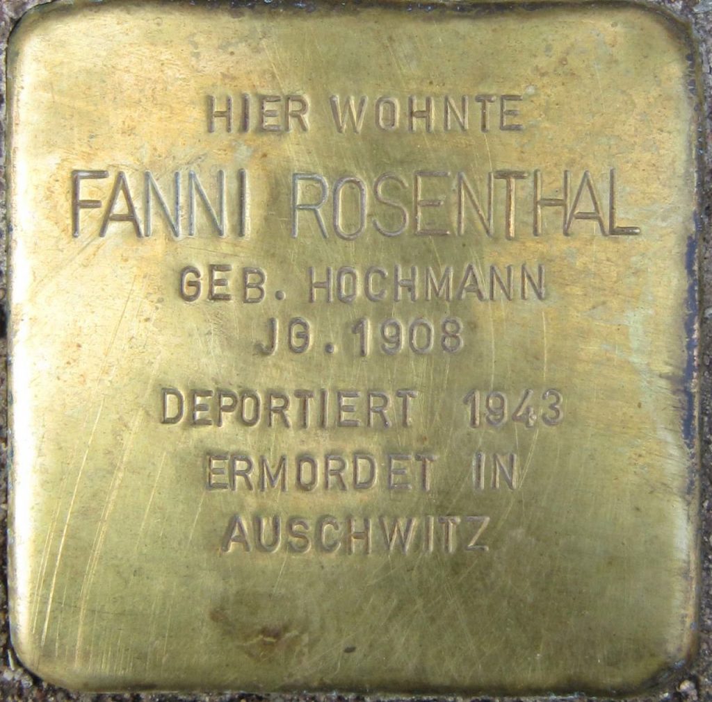 Hier wohnte Fanni Rosenthal. Ihre Biografie ist im Aktiven Gedenkbuch dokumentiert.