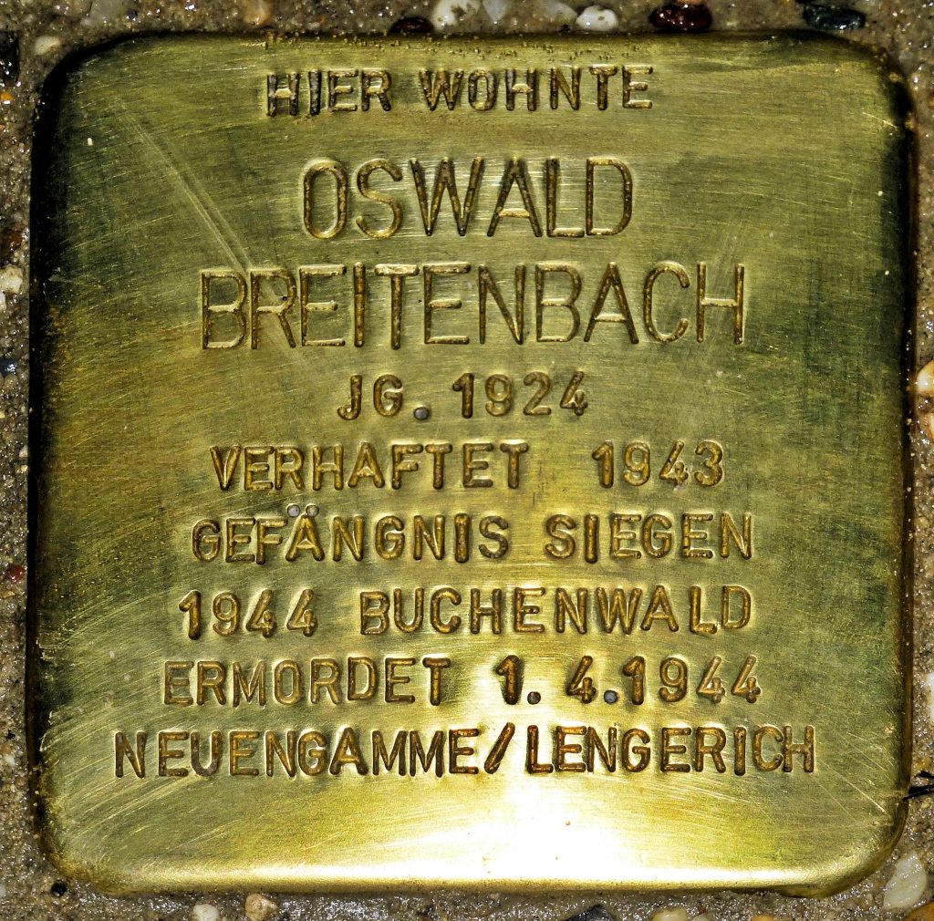 Hier wohnte Oswald Breitenbach. Seine Biografie ist im Aktiven Gedenkbuch dokumentiert.